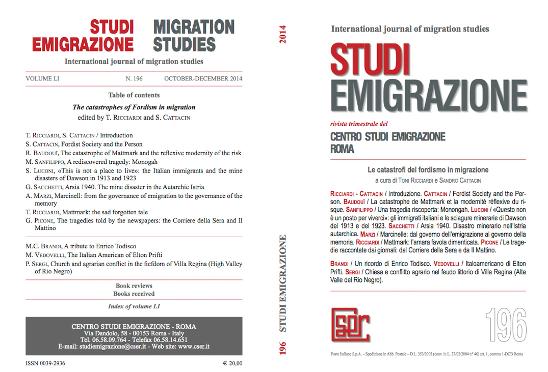 Ricciardi, Toni und Sandro Cattacin (Hg.) (2014). Le catastrofi del fordismo in migrazione. Numero speciale di Studi Emigrazione (196). Roma: Centro Studi Emigrazione.